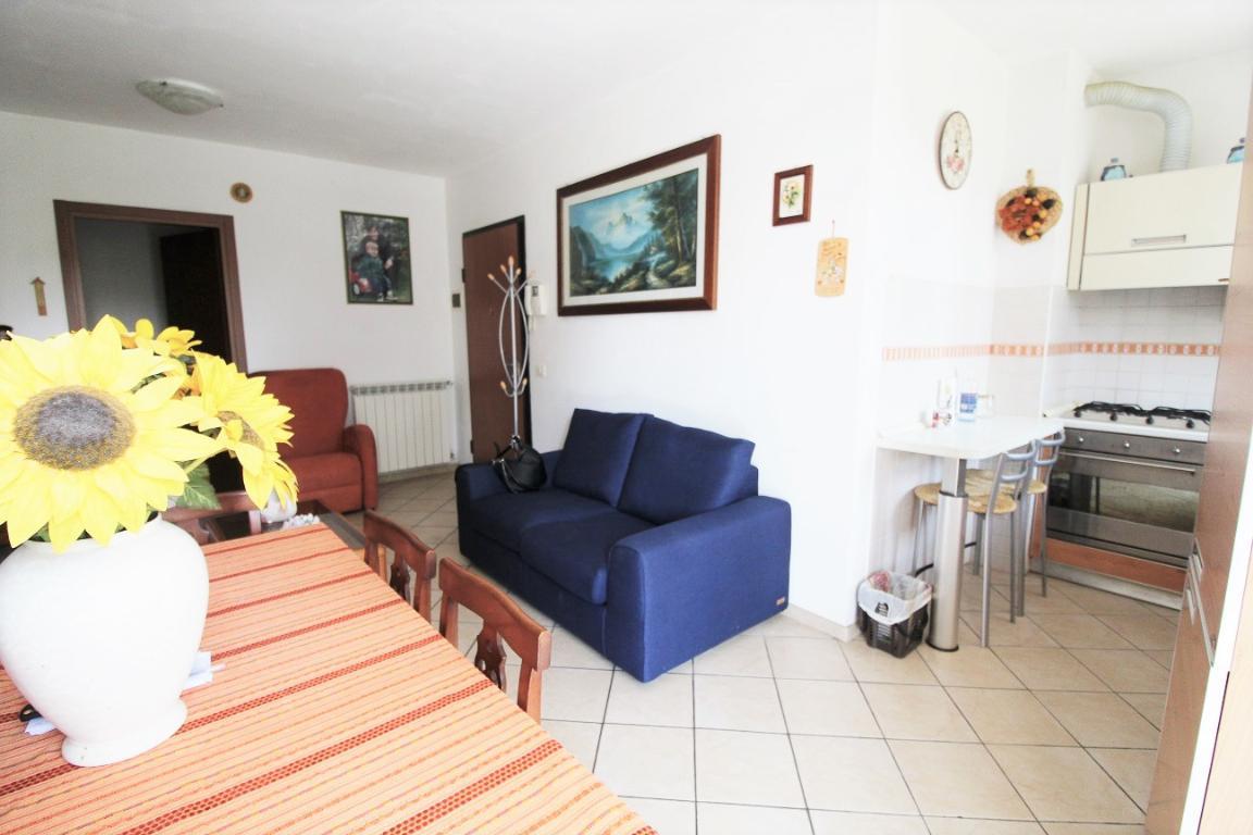 Ingresso direttamente sul soggiorno che accede alla lunga balconata , cucinotto a vista, camera matrimoniale, bagno e comodo ripostiglio\lavanderia.