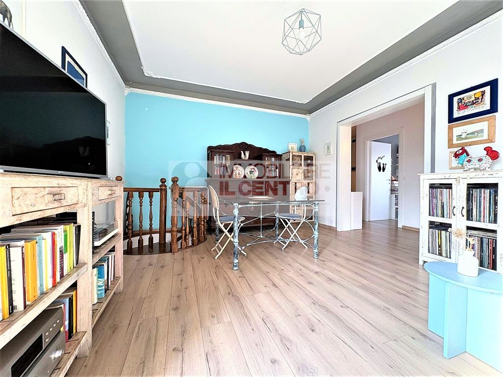 L’immobile, estremamente luminoso ed accogliente, si compone di doppio ingresso, quello condominiale e quello indipendente dal giardino di proprietà. La casa è composta di ingresso su disimpegno, ampio soggiorno con balcone, cameretta con balcone, due camere matrimoniali e bagno con vasca. Scendendo al piano inferiore troviamo la ciliegina sulla torta … una cucina con un delizioso angolo cottura in muratura e camino, il tutto abbellito da colori bianchi che dominano e accompagnati dall’azzurro che richiama inevitabilmente una casa che e’ non lontana dal mare, uno studio/cameretta e ulteriore servizio con doccia; da qui si accede al grazioso giardino per goderne nella stagione estiva. Completano la proprietà i due posti auto e la cantina. Termoautonomo.