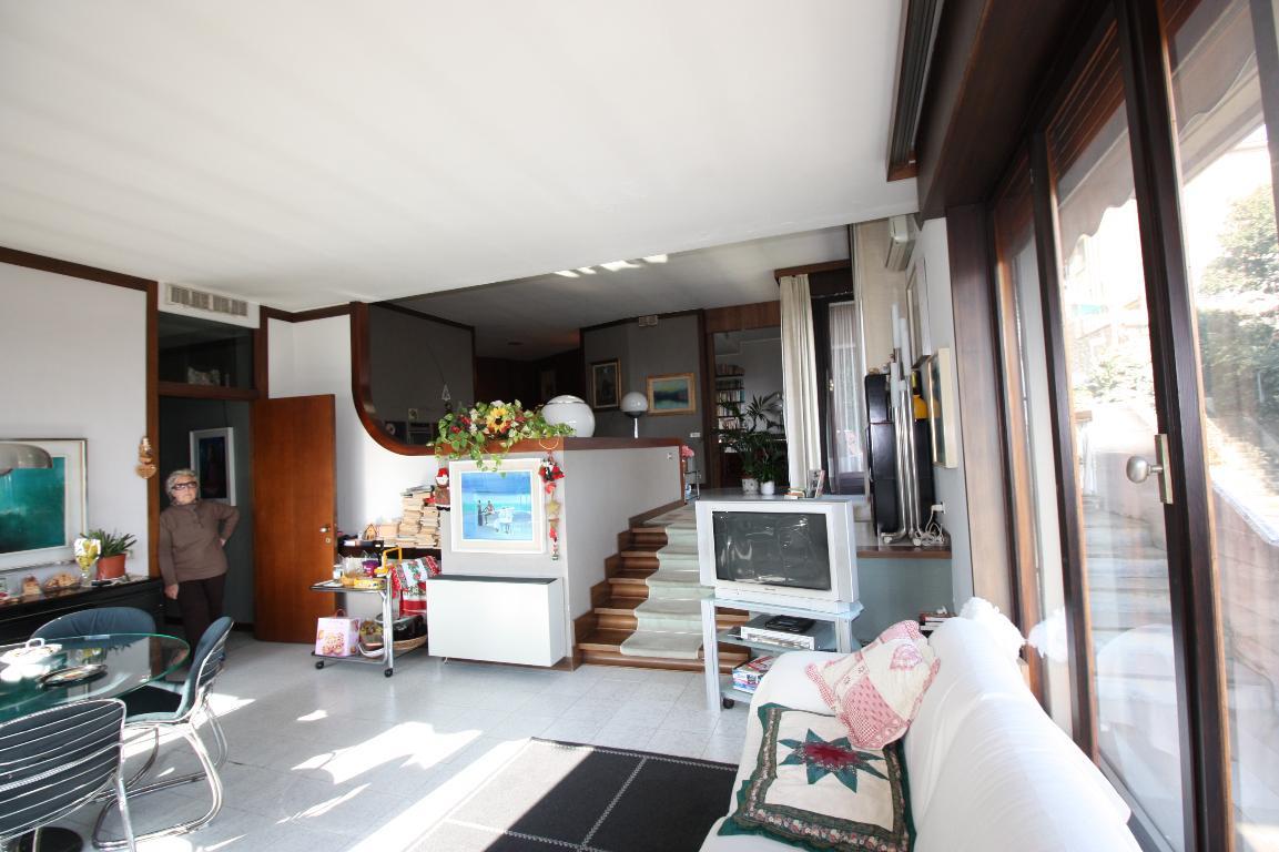 Colli Prestigioso appartamento di mq. 280, sito al piano quarto ed ultimo con spledida Vista Mare, composto da doppio caposcala di accesso al salone di 60 mq dislocato su due livelli, dotato di camino ed accesso alla terrazza vivibile con vista, studio, cucina abitabile con dispensa, 5 camere da letto con 4 bagni . Ottime la divisione interna, possibilità di sezionare in due unità abitative anche grazie al doppio caposcala. Incantevole la Vista sul Castello San Giorgio e la completa vista sulla città sino al mare. L' accesso, tramite la Via XXVII Marzo, con comodo garage di proprietà esclusiva, posto auto esterno e cantina.