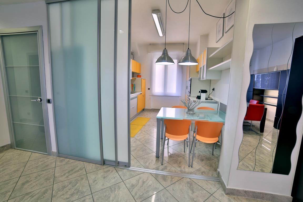 Viale Italia - in palazzo ubicato sul fronte mare della città, dove si svilupperà il progetto Waterfront, in zona di passaggio per le 5 terre e Portovenere, splendido appartamento completamente ristrutturato composto da: ingresso direttamente nell' ampio salone doppio con balcone, cucina abitabile, accesso alla zona notte dove si trovano due camere matrimoniali di cui una con cabina armadi, bagno e ripostiglio. Appartamento chiavi in mano arredato, finemente ristrutturato con materiali di lusso: pavimenti in gres, infissi doppi in pvc, vasca idromassaggio, aria condizionata, ecc.