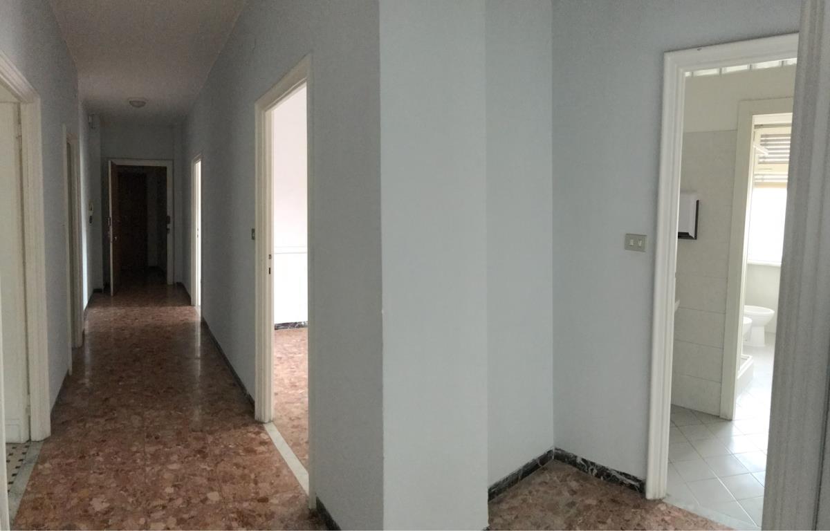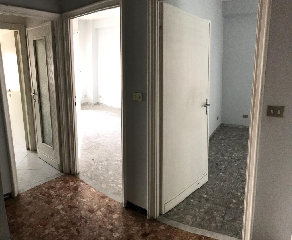 CENTRO - Appartamento di mq. 120 in palazzo anni ' 70 del centro storico recentemente ripristinato nella facciata dotato di ascensore. L' immobile in buone condizioni interne è così suddiviso: ingresso in corridoio, soggiorno, cucina abitabile, 3 camere matrimoniali, bagno e ripostiglio oltre a lunga balconata di metri 10 in comune a tre stanze. Immobile suddiviso da sole tramezze con possibilità di ricavare soggiorno open space, 3 camere e doppi servizi. Oggetto unico nel centro città e di rara reperibilità. Ottimo prezzo al metro quadrato.