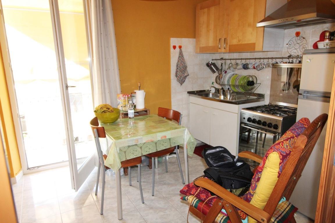 Ingresso , cucina abitabile con balcone , camera matrimoniale , bagno.