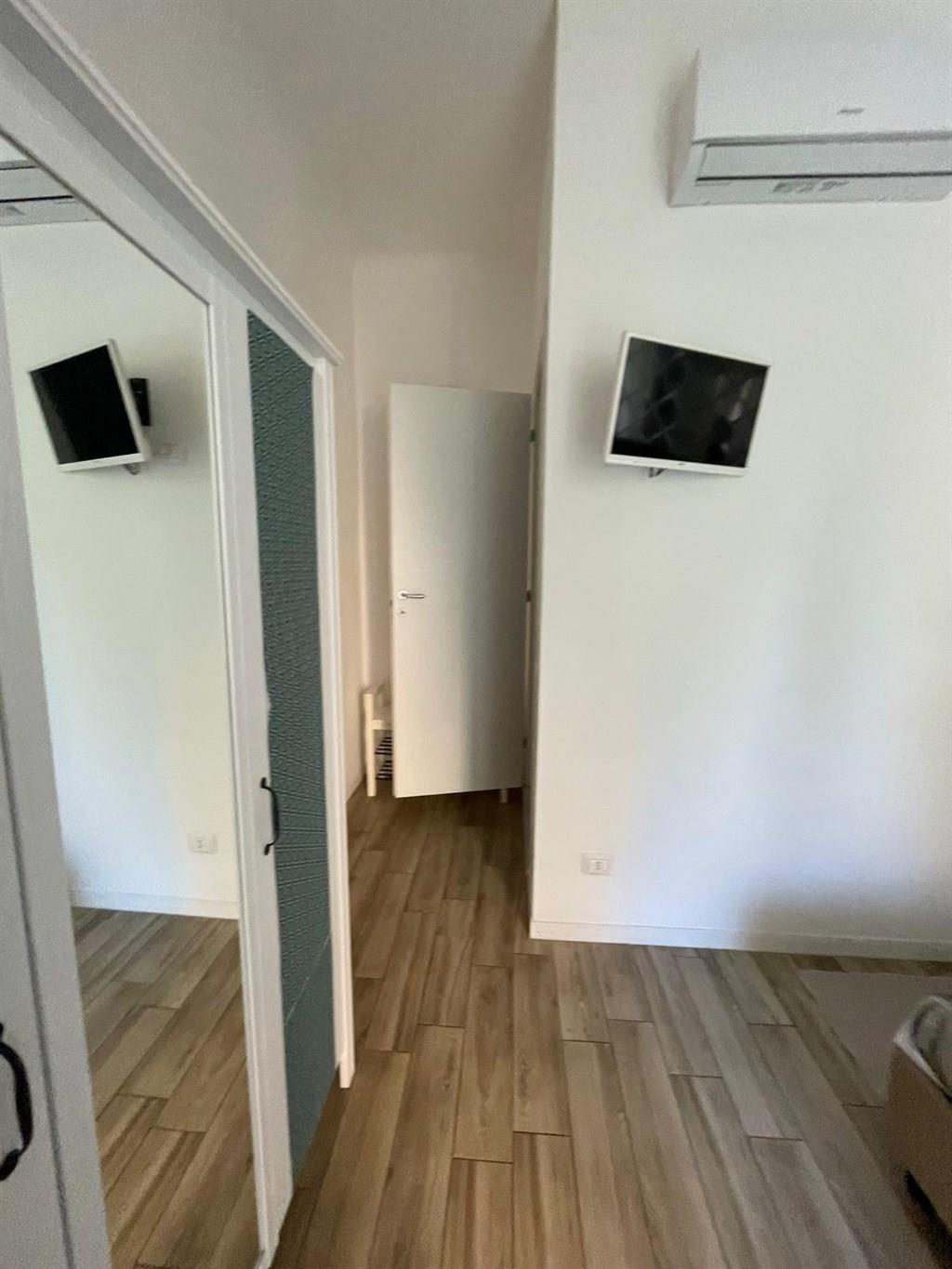 ampio bagno finestrato, cucina attrezzata con lavatrice, aria condizionata e infissi in doppio vetro.