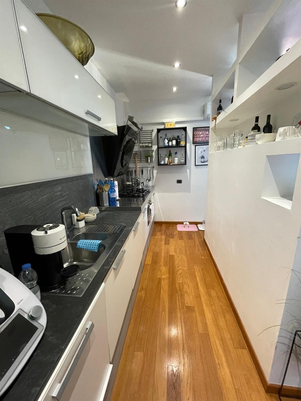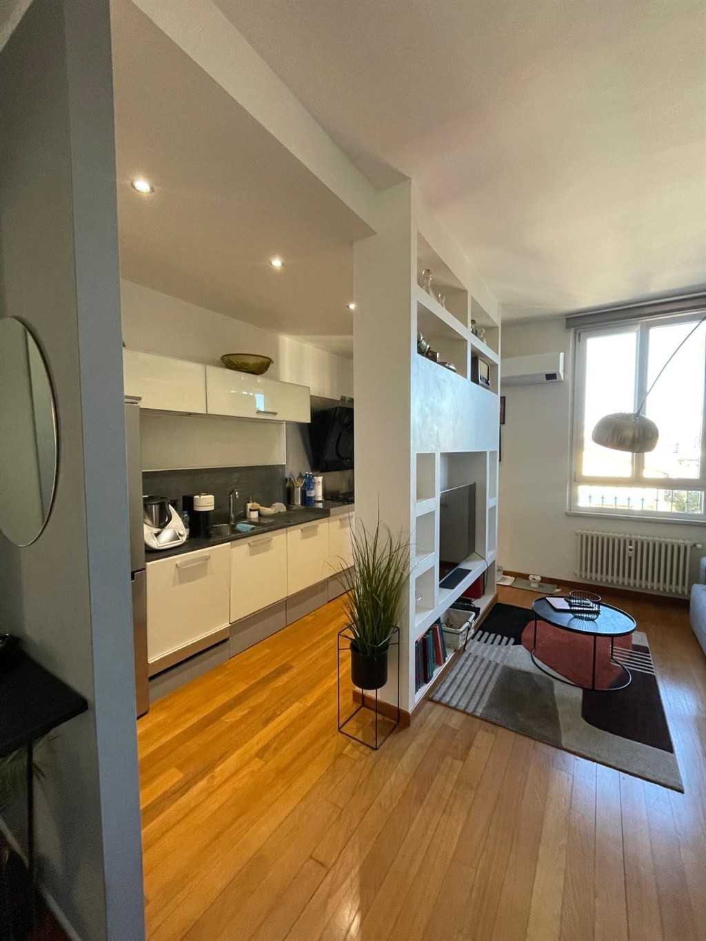 L’ingresso si apre su una spaziosa zona living composta da soggiorno con angolo cottura, ampio bagno finestrato due camere matrimoniali di cui una con accesso diretto al balcone. tramite una scala interna si accede al piano superiore dove è collocato un locale di servizio completo eleganti rifiniture
