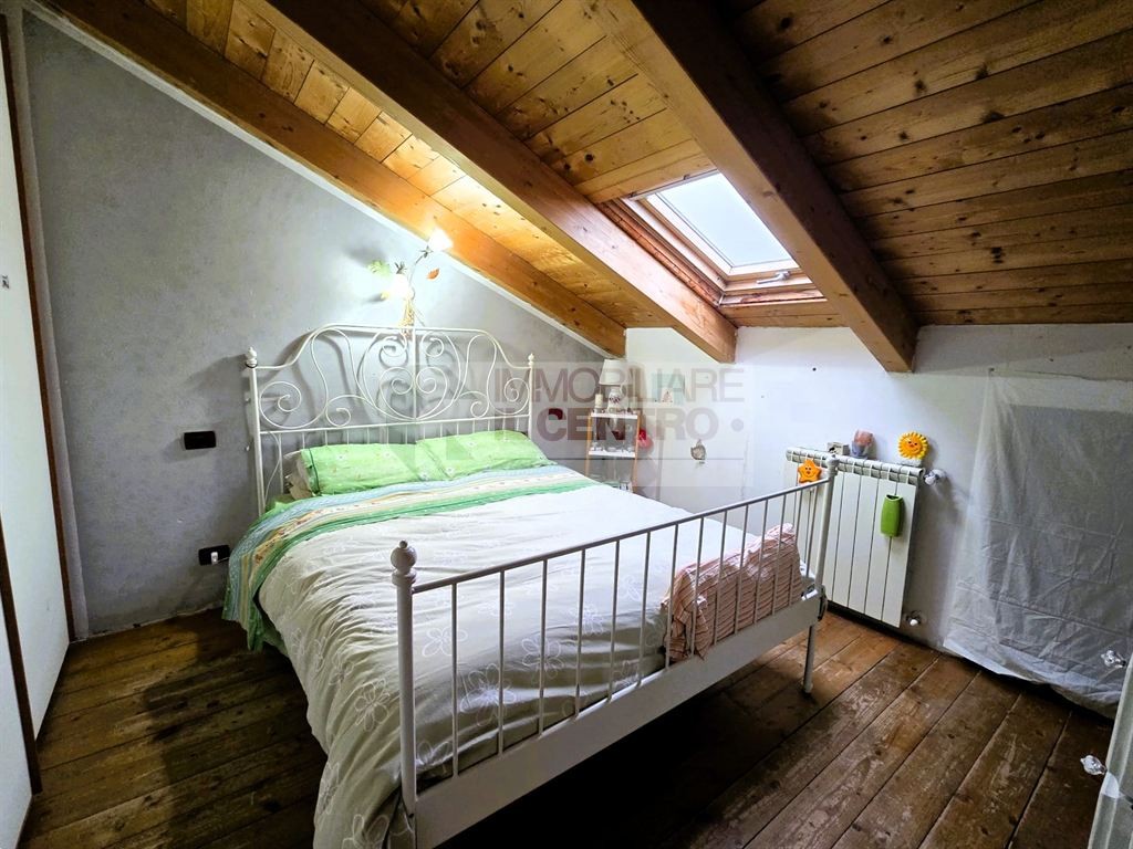 In stabile quadrifamiliare, appartamento da riammodernare posto al P1 composto da ingresso, cucina abitabile, soggiorno con terrazza e bagno. Al piano sottotetto tre camere. Completano la proprietà cantina e posto auto.
