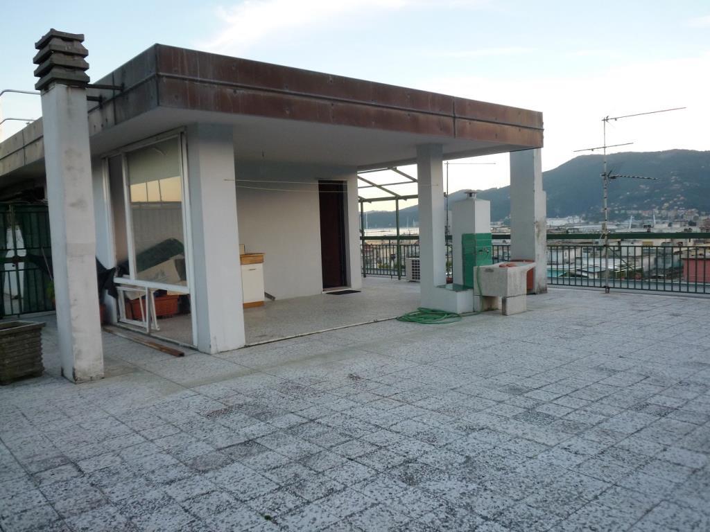 Centro Vic. ospedale Centrale - In condominio anni 70' attico di mq. 118 composto da ingresso nella sala con balcone, adiacente cucina con tinello, disimpegno della zona notte con due ampie camere, bagno con vasca e doccia : nella sala, scala di accesso al piano superiore con stanza adibita a studio con antistante ampio porticato e circostante terrazza di mq. 150 con visuale panoramica sulla città e vista mare.