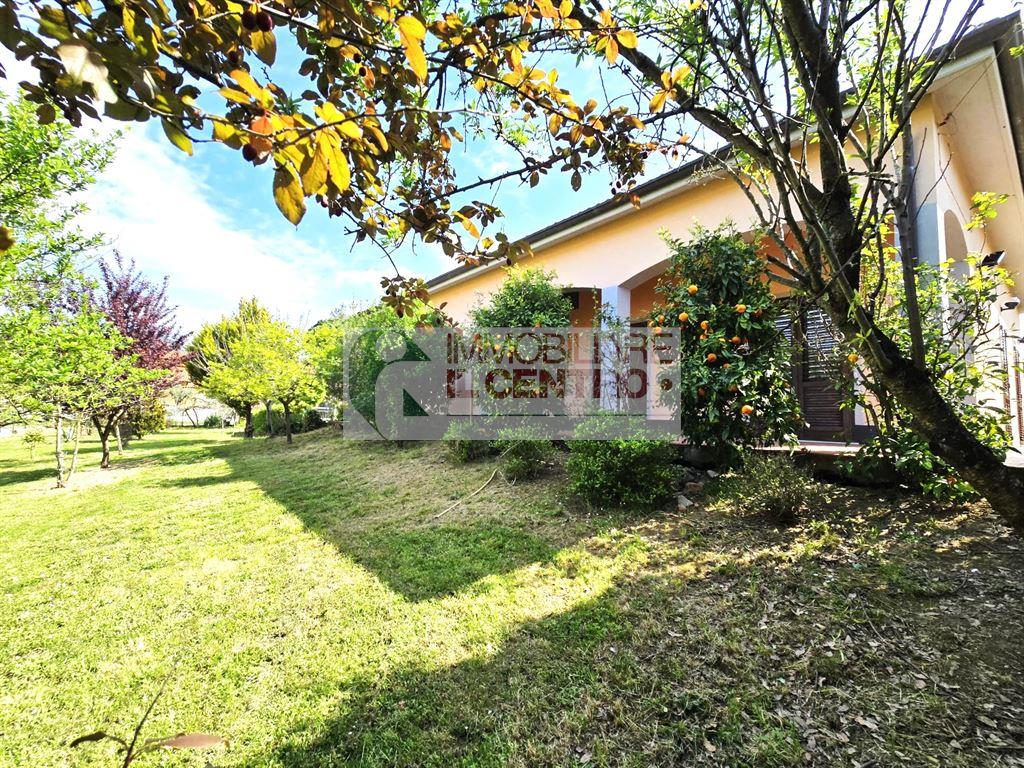 L'immobile, è composto da: al Piano seminterrato ampio garage di mq 180 circa con locale tecnico della piscina; al Piano Terra ingresso, cucina, soggiorno, tre camere e doppi servizi; Al Piano sottotetto con accesso dall'esterno ampio sottotetto.