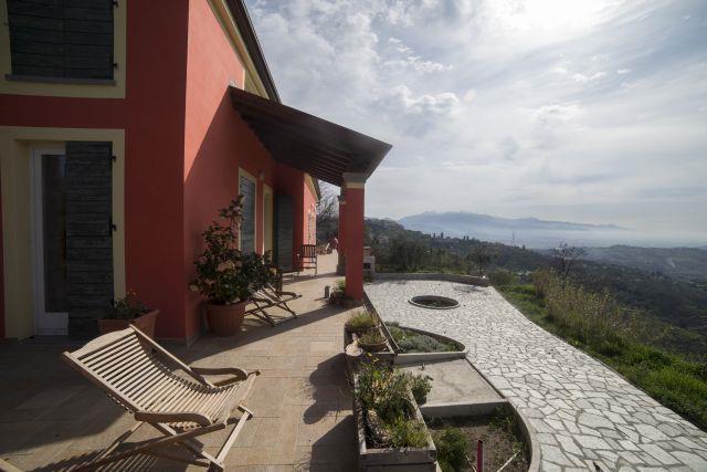 IN ZONA COLLINARE, A POCHI MINUTI DALLA CITTA' VILLA INDIPENDENTE, COMPOSTA DA: P.T: MQ.110 CON PORTICO D'INGRESSO, SOGGIORNO CON ANGOLO COTTURA E ZONA SOPPALCATA CHE AFFACCIA SUL SOGGIORNO, 3 CAMERE, 1 BAGNO, LOCALE CALDAIA + P.SEMINTERRATO: TAVERNA/CANTINA DI MQ. 90, BOX AUTO DI MQ. 54 + PICCOLO FABBRICATO AD USO DEPOSITO + TERRENO DI PROPRIETA' CIRCOSTANTE DI MQ 8.769 - OTTIME RIFINITURE DI PREGIO. MOLTO LUMINOSA VISTA PANORAMICA.