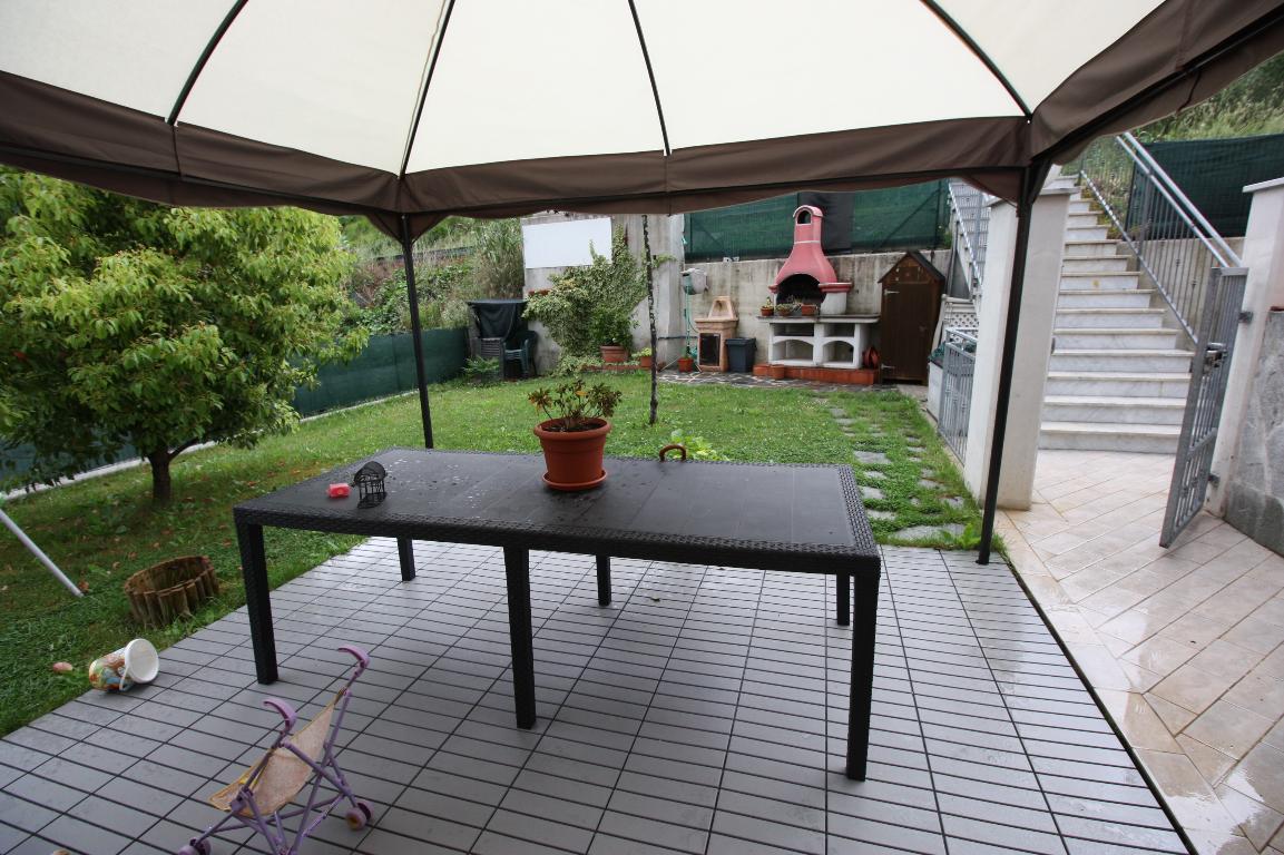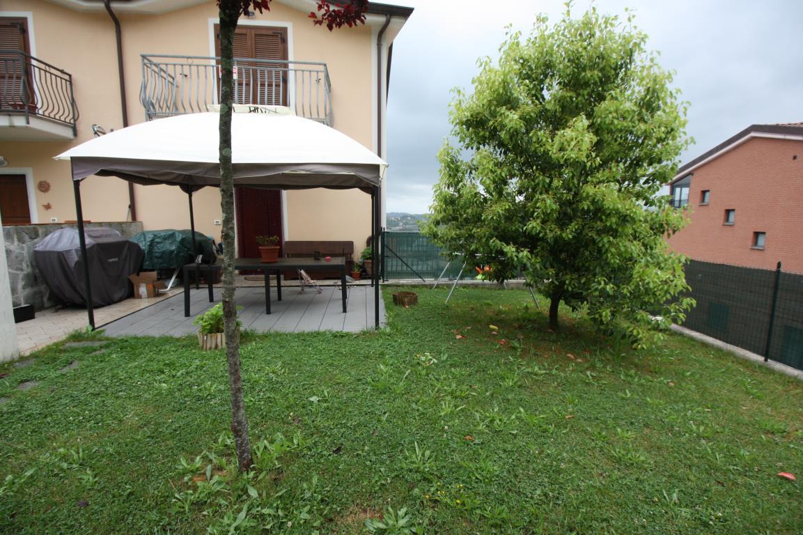 Albiano loc. Debbio. Immerso nel verde posizionato in zona precollinare con vista panoramica, villino terratetto in bifamiliare di recente costruzione, composto da ampio parcheggio privato e giardino con accesso al piano terra alla taverna con zona cottura e bagno di servizio, scala di accesso al piano superiore, sala con balcone ed accesso primario tramite il giardino di proprietà, cucina a vista con balcone e bagno, scala di collegamento al piano superiore con due camere di cui una con balcone e bagno. Buone le rifiniture generali.