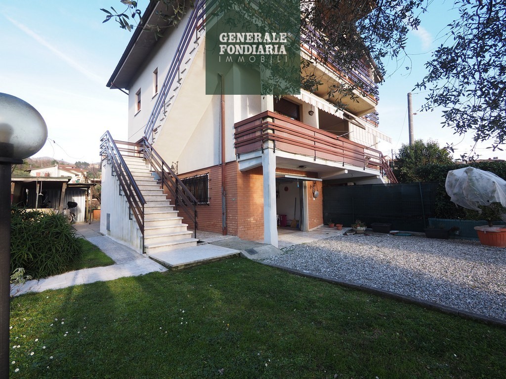 Al piano terra si sviluppano gli spazi esterni e di servizio: un giardino curato con tre attacchi d'acqua e molteplici prese, una striscia di orto, una zona pavimentata ideale per momenti di relax all’aperto, oltre a un pozzo elettrico e a pratici locali accessori, tra cui un ripostiglio sottoscala dotato di impianto elettrico per illuminazione esterna.