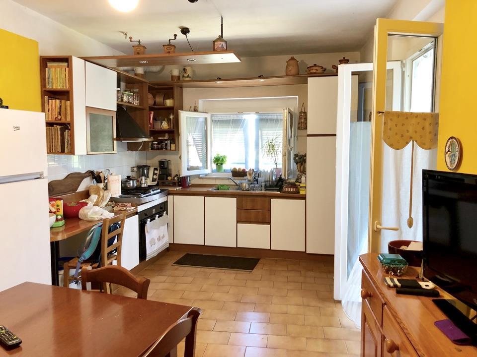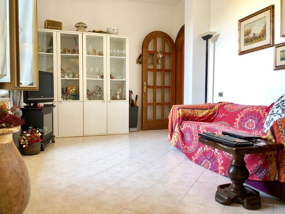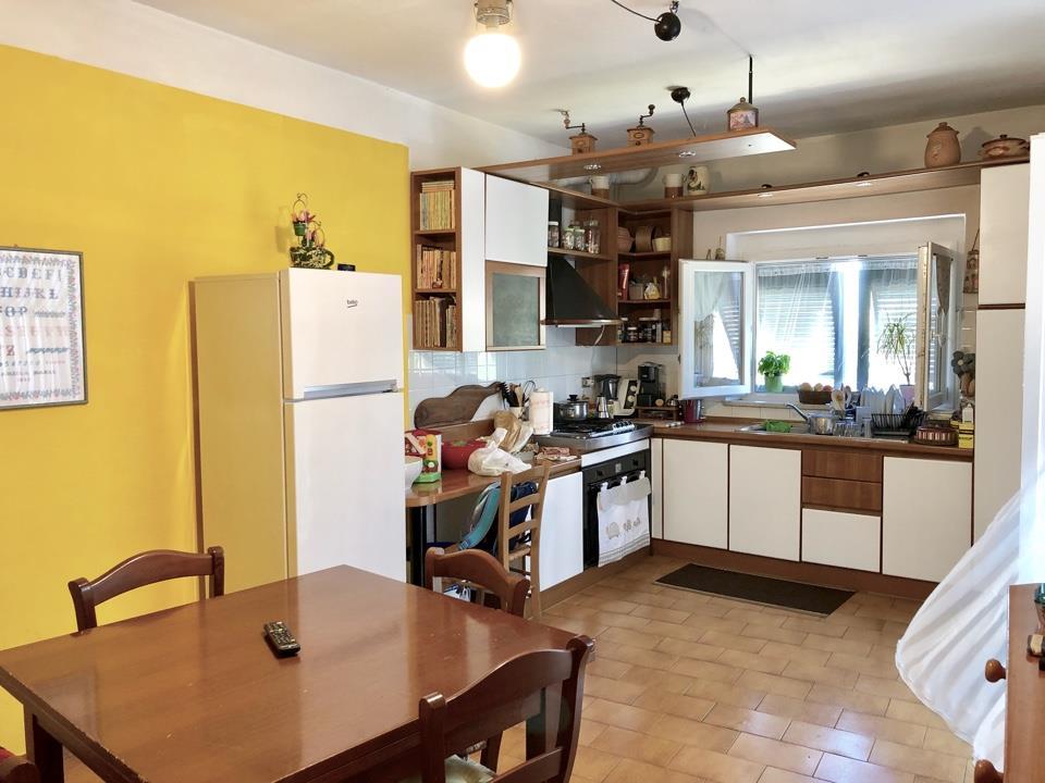 Appartamento in villa bifamiliare in perfette condizioni esterne con facciata rifatta 4 anni fa. L’ appartamento ha accesso indipendente dal cortile/giardino di proprietà di mq. 50; con la scala di accede direttamente al vano soggiorno, grande cucina abitabile con balconata, 2 ampie camere matrimoniali, camera singola, ampio ripostiglio e sala da bagno con doccia e vasca. Interni in buone condizioni. Box/cantina di proprietà di mq. 12