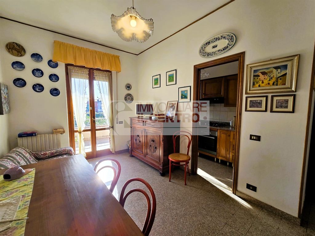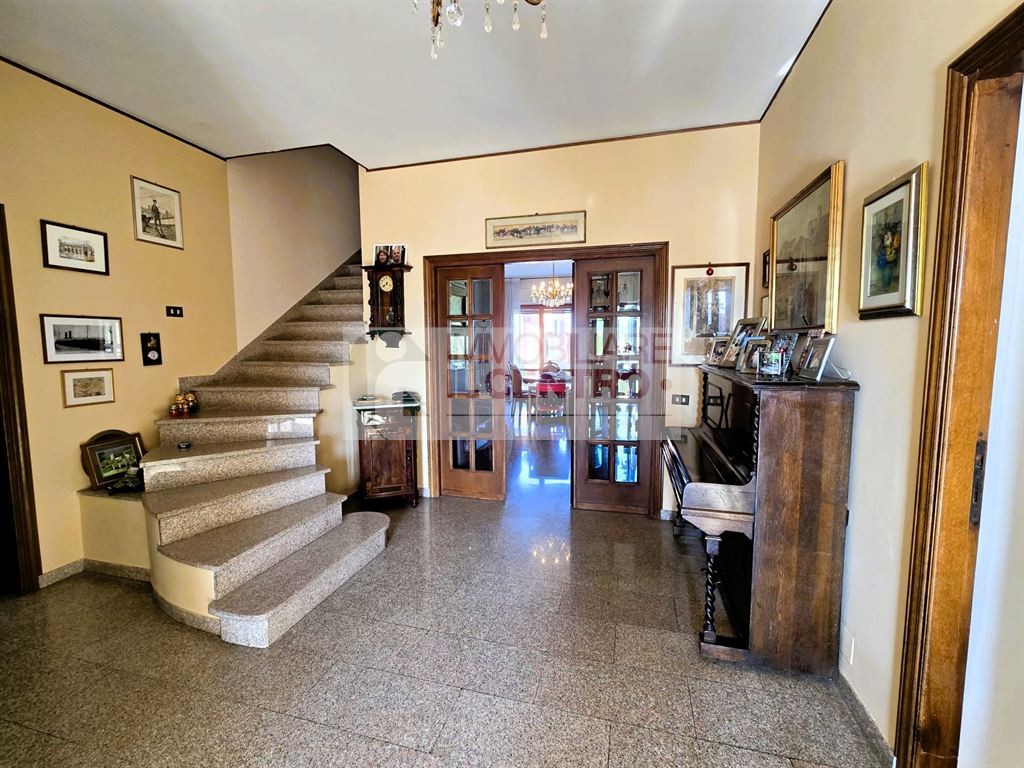 L'immobile si sviluppa al piano primo ed ultimo di bifamigliare ed è composto da terrazza d'ingresso da dove si accede al disimpegno, sala da pranzo con cucinotto, ampio soggiorno con balcone, 3 camere da letto, doppi servizi ed ulteriore terrazza; al piano superiore troviamo la soffitta di ulteriori 100 mq. attualmente suddivisa in 4 vani.