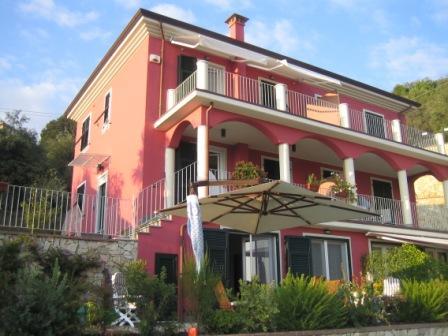 Lerici loc. Solaro sulle colline, semindipendente disposta su 3 livelli di circa 200 mq con piscina condominiale e giardino di 1000 mq composta da piano terra soggiorno con cucina camera matrimoniale bagno ripostiglio e lavanderia; piano primo soggiorno con porticato cucina abitabile camera matrimoniale e bagno; piano secondo 3 camere di cui una con cabina armadi e bagno. Ottime rifiniture. Vista mare.