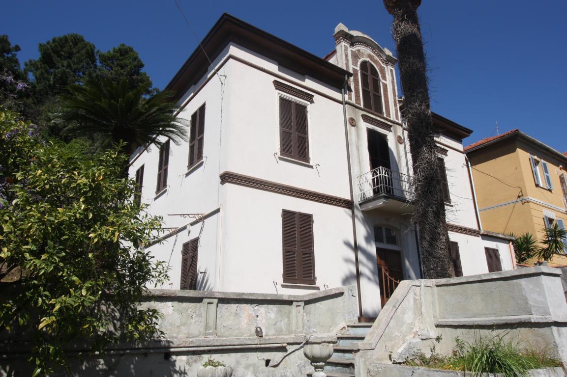 Ruffino Villa in stile liberty con parco privato e sottostante garage interrato, pregevoli rifiniture dell' epoca disposta su tre piani con ampia stanza d' ingresso sala con camino ed accesso al giardino, cucina e sala da pranzo, bagno di servizio e cantina ad uso dispensa, scala interna di accesso al piano primo dove si sviluppa la zona notte composta da cinque camere e bagno, scala di accesso al piano secondo con stanza nella torretta mansardata ed adiacente sottotetto ad uso ripostiglio/stanza di sgombero. Pregevoli le rifiniture originali dell' epoca come i pavimenti e le porte interne, nuovi gli infissi esterni, in ordine facciata e tetto, da ripristinare impianti e servizi . Occasione unica .