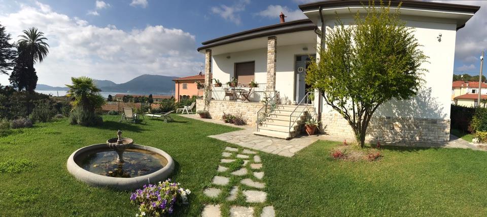 Nella collina sopra Porto Lotti, in zona soleggiata e silenziosa, a pochi minuti dal centro città e dalle spiagge di Lerici, prestigiosa villa di mq. 180 con splendida vista mare, recentemente ristrutturata e così suddivisa: ingresso in lungo corridoio, soggiorno doppio, cucina abitabile e 4 suite private con 4 bagni interni. Aria condizionata in tutta la proprietà, infissi doppi, pavimenti in parquet e bagni in graniglia genovese. Perfetta in ogni minimo dettaglio. Inoltre completano la proprietà: la possibilità di sfruttare mq. 100 di sottotetto, una depandance di mq.25 ampliabile, parco di proprietà di mq. 500 com possibilità di installare una piscina a sfioro con il mare, doppio posto auto coperto da tettoia. Immobile di rara repribilità e vero pregio.