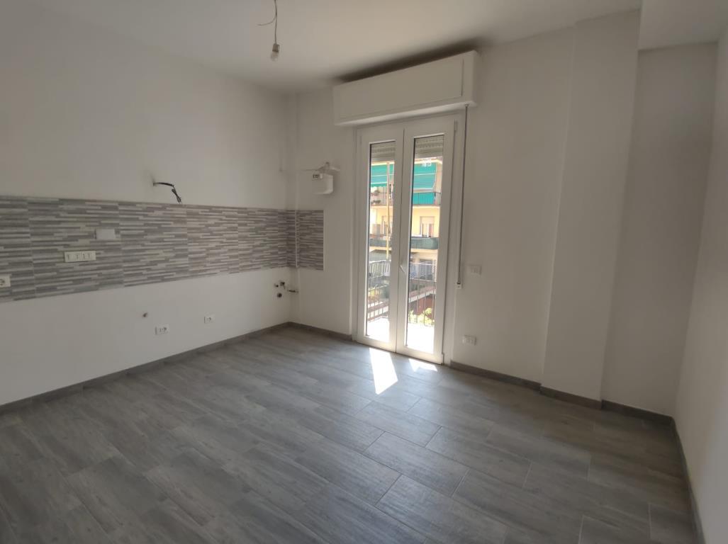 Ingresso in disimpegno che affaccia sul soggiorno con angolo cottura e balcone, camera matrimoniale con seconda balconata, studio, bagno e comodo ripostiglio.
