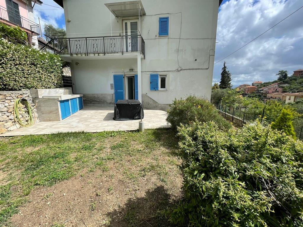 L'ingresso indipendente da ampio giardino perfettamente curato e con cucina estiva in muratura, disimpegno, cucina abitabile, salotto a vista, camera matrimoniale e servizio con box doccia.