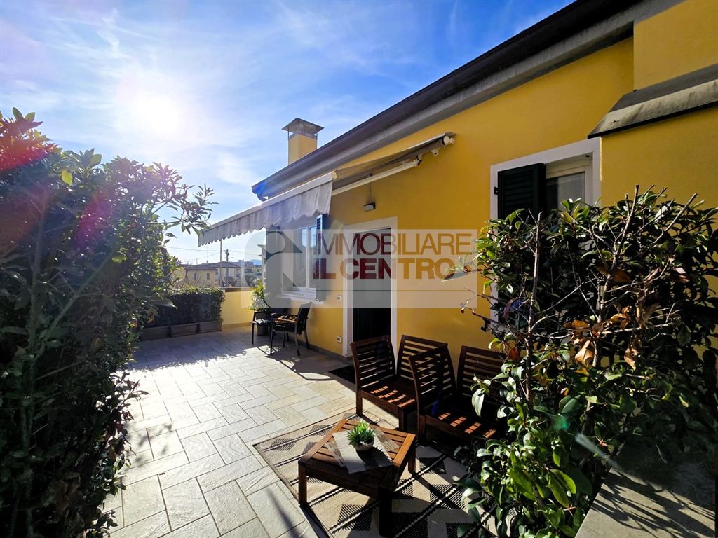 L'immobile, completamente e finemente ristrutturato nel 2018, si compone di un ingresso in ampio soggiorno, cucinotto, bagno finestrato e bellissima terrazza abitabile di 50 mq.; al Piano Superiore troviamo una camera matrimoniale mansardata.