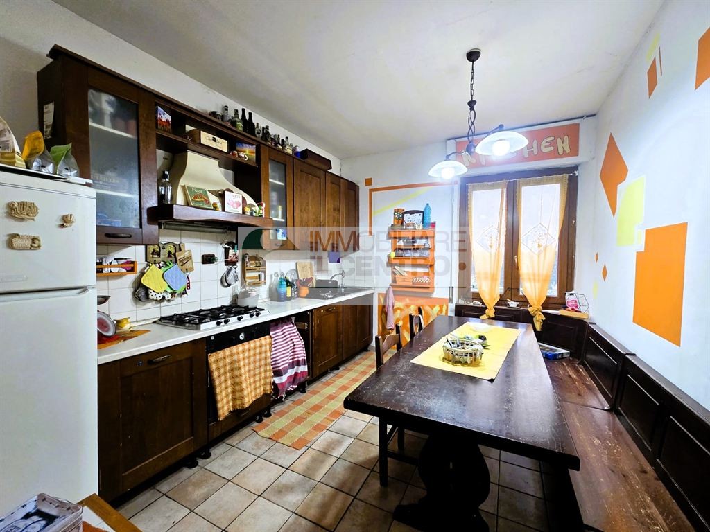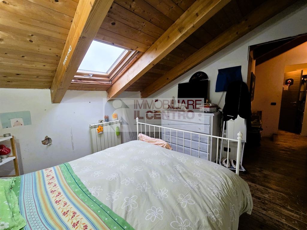 In stabile quadrifamiliare, appartamento da riammodernare posto al P1 composto da ingresso, cucina abitabile, soggiorno con terrazza e bagno. Al piano sottotetto tre camere. Completano la proprietà cantina e posto auto.