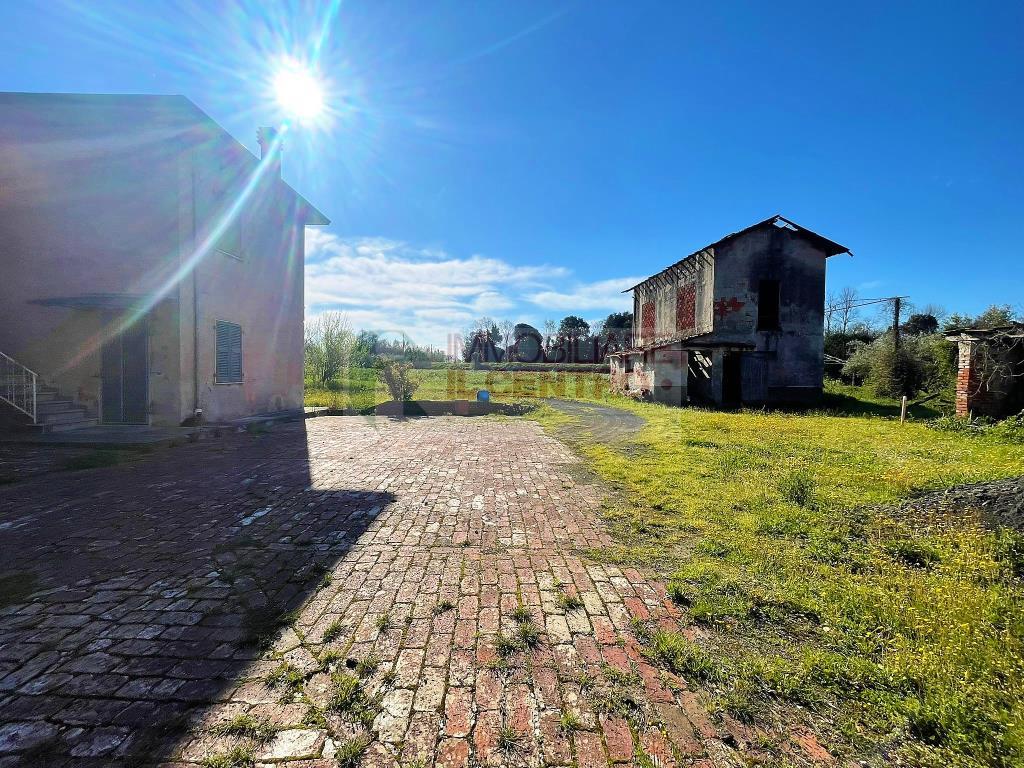 Sarzana prima periferia, in zona comoda e soleggiata, inseriti in lotto di terreno agricolo completamente pianeggiante di 20.000 mq. con entrostante serra accatastata e n° 3 fabbricati da ristrutturare per complessivi mq 387. Corpo A al P.t cucina con camino, camera matrimoniale, ripostiglio e garage doppio; al P.1° corridoio, camera matrimoniale, cameretta, soggiorno, cucina abitabile e bagno. Corpo B: fienile su due livelli da ristrutturare. Corpo C fienile composto da 3 vani al p.t. e 1 vano al p.1°.