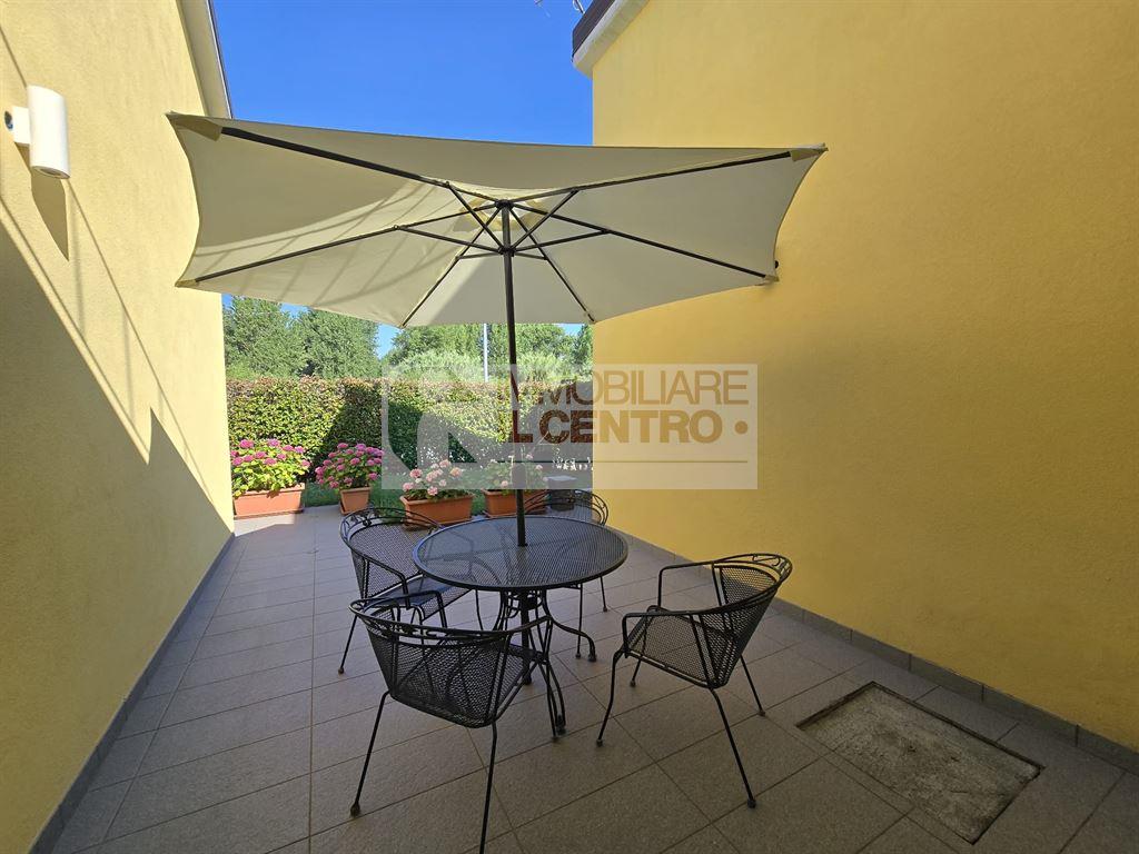 Il giardino di circa 600 mq. pianeggiante e completamente recintato ospita una piscina ed i due posti auto scoperti.