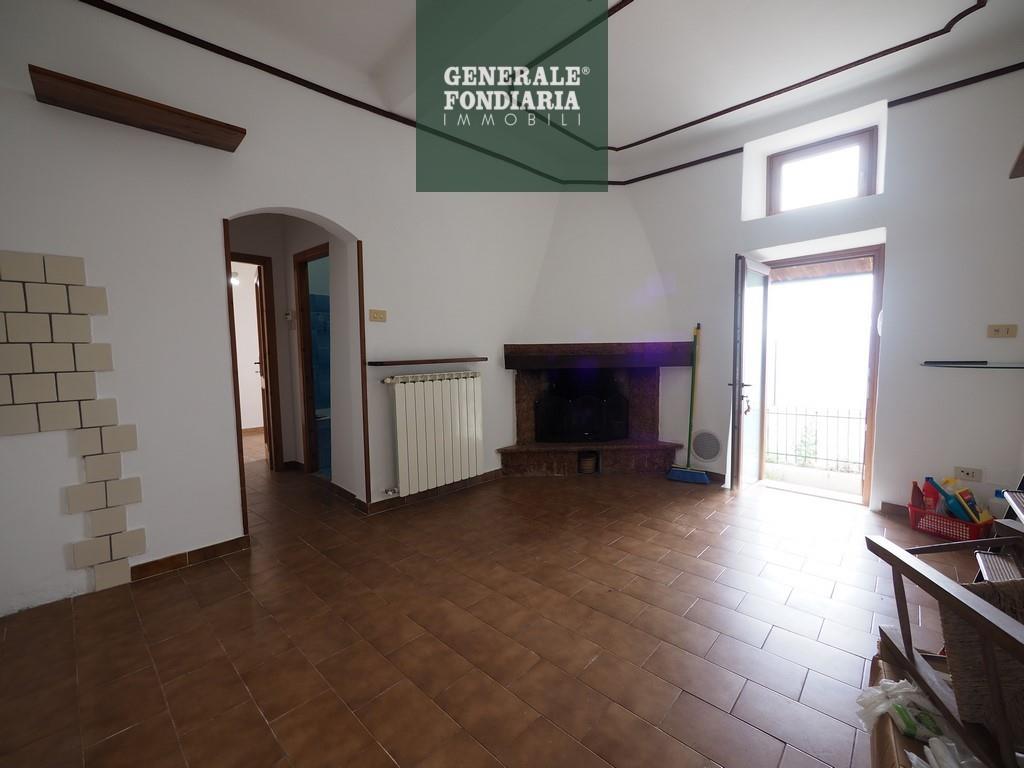 Ingresso nella giorno, con cucina a vista e salottino con camino  a legna, cameretta o eventuale soggiorno con ripostiglio nel sottoscala, bagno finestrato con vasca. Al piano superiore camera matrimoniale con vista aperta sulla vallata. Il riscaldamento è autonomo. Gli infissi sono in pvc effetto legno con doppi vetri, zanzariere e persiane in alluminio.