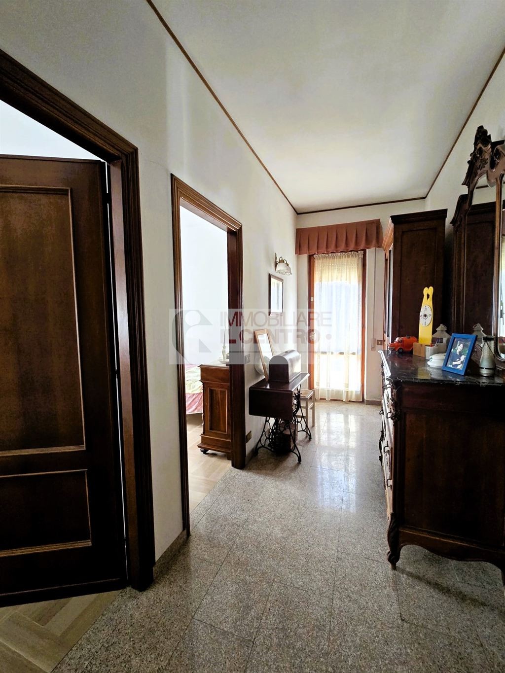 L'immobile si sviluppa al piano primo ed ultimo di bifamigliare ed è composto da terrazza d'ingresso da dove si accede al disimpegno, sala da pranzo con cucinotto, ampio soggiorno con balcone, 3 camere da letto, doppi servizi ed ulteriore terrazza; al piano superiore troviamo la soffitta di ulteriori 100 mq. attualmente suddivisa in 4 vani.
