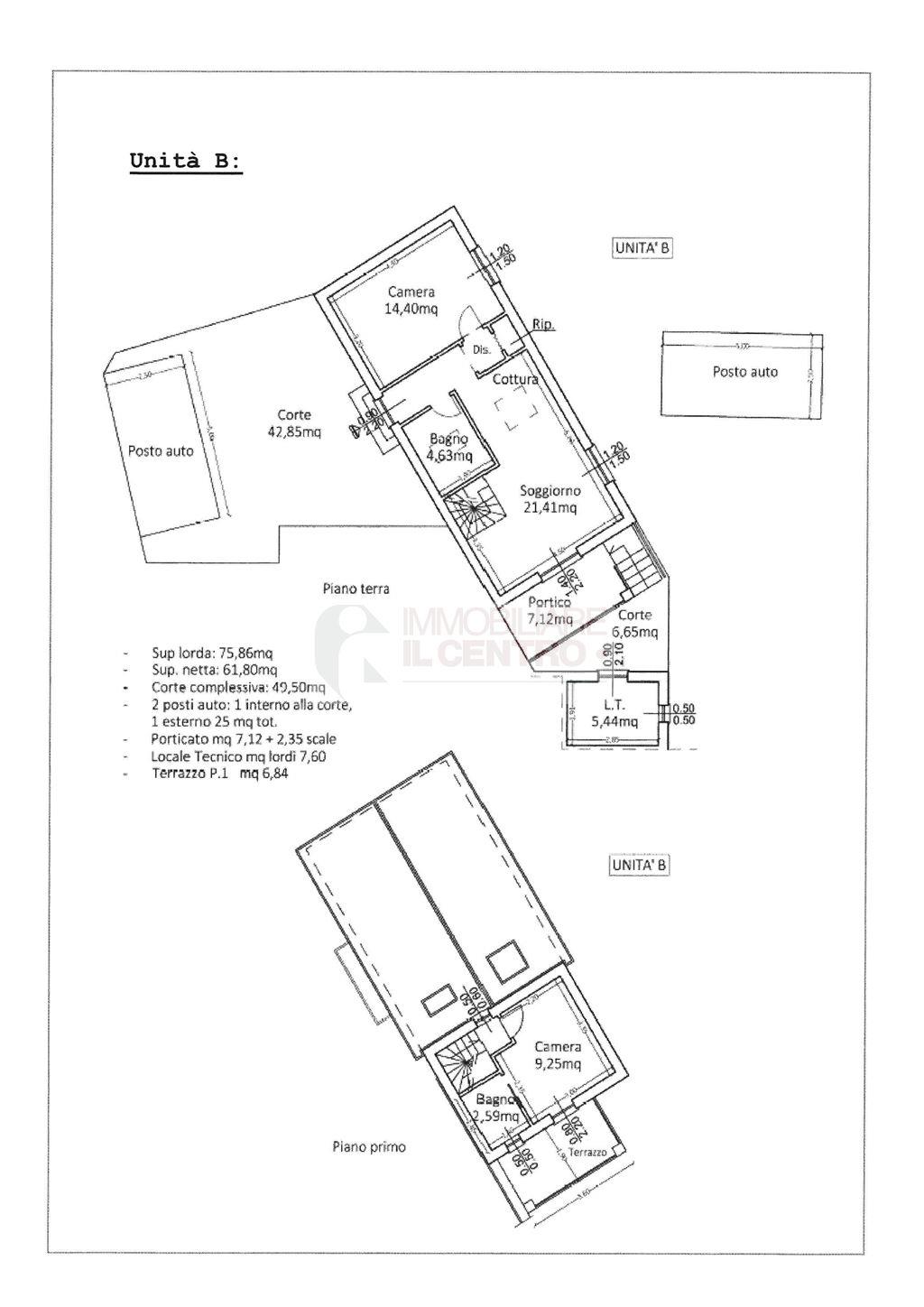 L'immobile disposto su due livelli è composto da: al Piano Terra ingresso da corridoio, soggiorno con angolo cottura e porticato con accesso a corte, disimpegno, camera e bagno; al Piano Primo camera con bagno e terrazza abitabile.