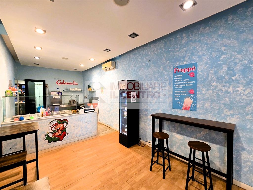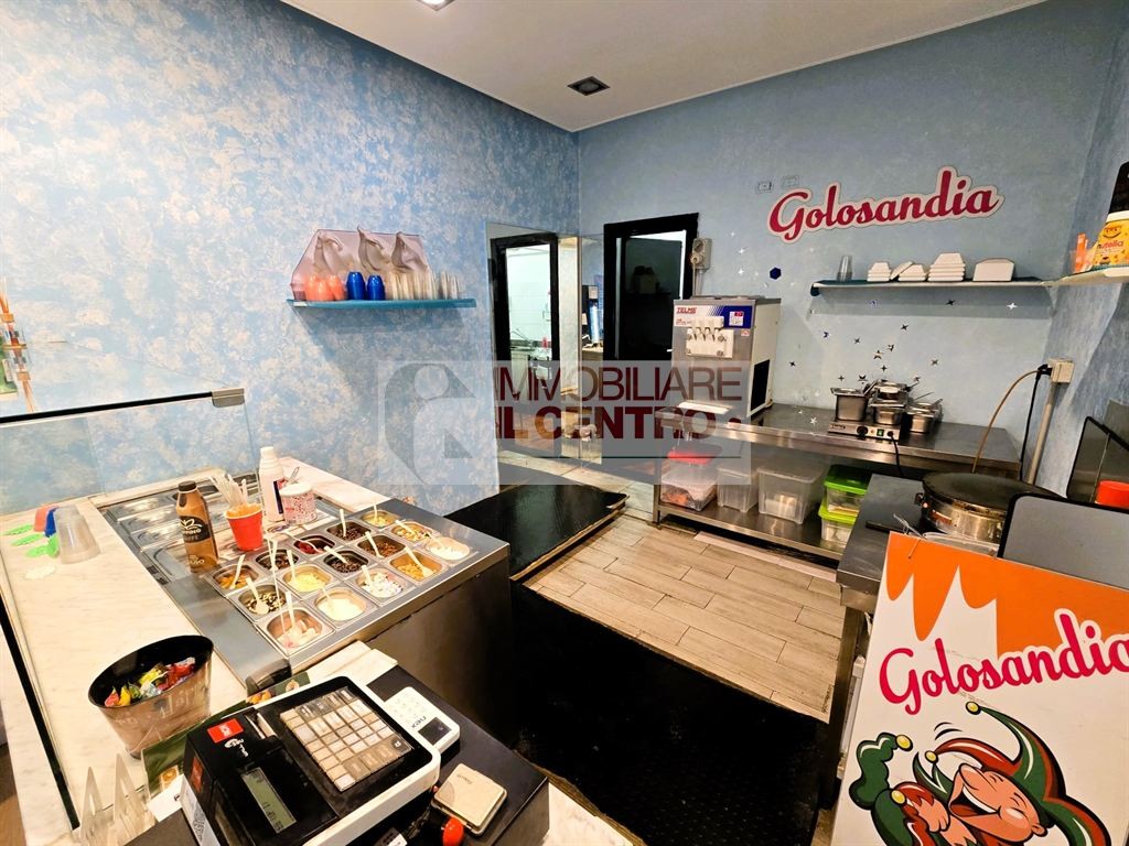 Nel cuore del centro storico, licenza di gelateria, pasticceria e yogurteria in fondo ristrutturato di mq 42 composto da due vani e servizio ad uso privato completo di attrezzatura.